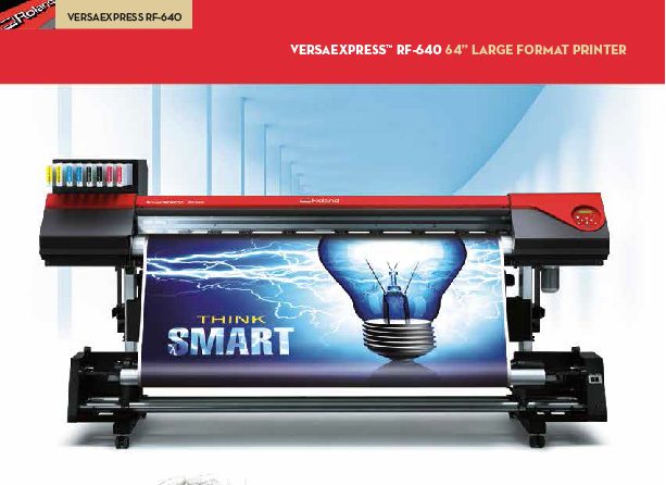 Impressive print speed and quality, advanced productivity features and unmatched reliability and support make the VersaEXPRESS RF-640 large-format inkjet printer the smart choice for your business. Efficient, reliable and affordable, the VersaEXPRESS RF-640 delivers outstanding prints day in and day out.